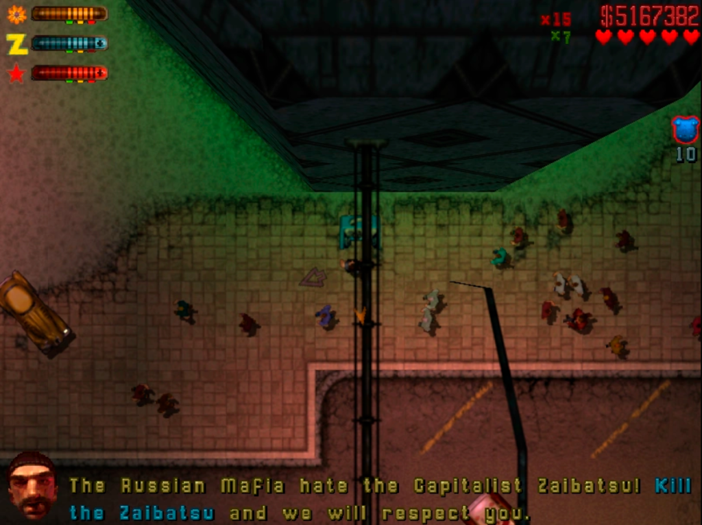 Понятно, что однотипные качки с «калашами» и «кирпичными» лицами — не самое увлекательное раскрытие темы. То ли дело упомянутая выше GTA IV — тут геймеров готовы поприветствовать целых две огромных преступных группировки с похожими названиями: «Русская банда» и «Русская мафия». И до кучи — так называемый «Преступный синдикат Булгарина», управляемый эксцентричным авторитетом по имени-фамилии Родислав (Рэй) Булгарин.