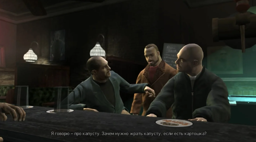Справедливости ради, изъясняется Нико не на русском, а на сербохорватском. А еще, было дело, участвовал в Югославской войне — то есть родом, скорее всего, с Балкан. Но, во-первых, «писали» парня не с кого-нибудь, а с Владимира Машкова, вернее, с его персонажа из фильма «В тылу врага». А во-вторых, «атмосфэра», пронизывающая ньюйоркообразный город Либерти-Сити, не собирательно-славянская — там именно что «Русью пахнет».