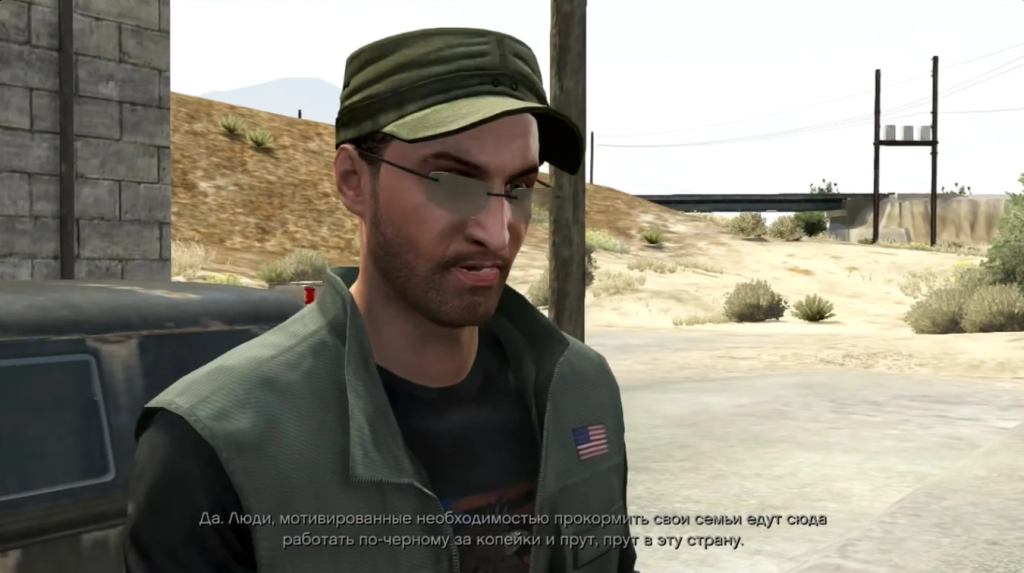 В пятой (и на сегодняшний день последней) части GTA действует-злодействует всего один русскоговорящий рубака. Некто Джозеф не знает ни слова по-английски, что его совершенно не смущает: к окружающим он обращается на языке Пушкина в его, разумеется, сниженном варианте. А когда жители США предсказуемо не понимают, что им хотят сказать, Джозеф психует и хватается за огнестрельное оружие.