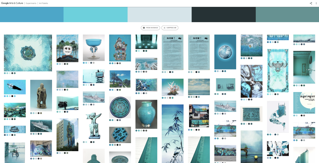 Хотите добавить в свою жизнь побольше красоты и искусства, но не знаете, с чего начать? Попробуйте с любимого цвета. Например, вам по душе аквамарин. Сервис Art Palette покажет вам работы художников, разделяющих ваш вкус.