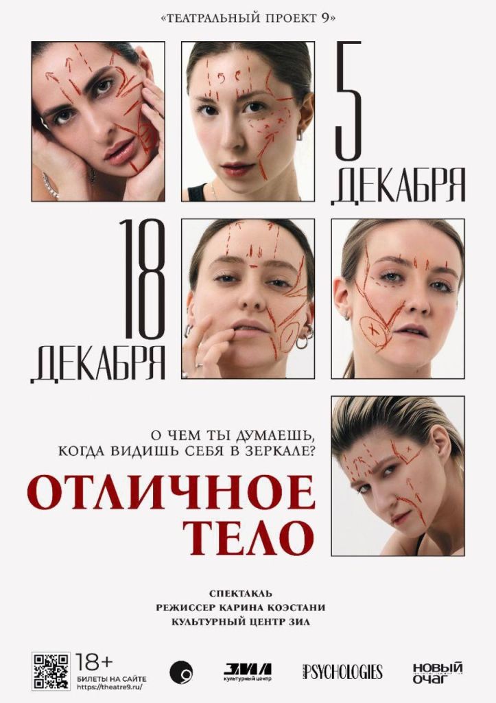 Мы живем в мире, где недовольство собой и своим телом в какой-то момент стало почти нормой. Даже подростки садятся на жесткие диеты, миллионы людей страдают от расстройств пищевого поведения, сотни тысяч — ищут гармонии с собой на столе у пластического хирурга. Спектакль «Отличное тело» предлагает задуматься: стоит ли пытаться переделать себя, вместо того чтобы научиться себя любить и ценить.