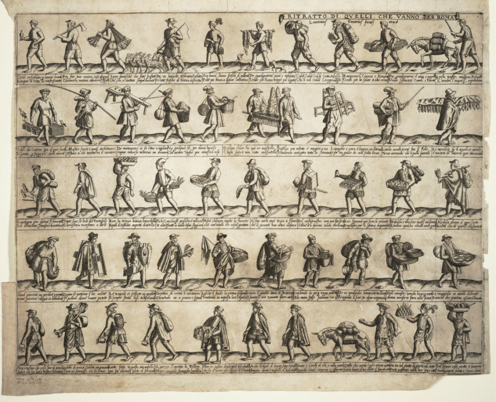 Продавщиц, особенно тех, торговал вразнос, регулярно обвиняли в проституции — неслучайно энциклопедист XV века Полидор Вергилий в своём обзоре человеческих изобретений поместил meretrice (блудницу) после mercanzia (торговли).