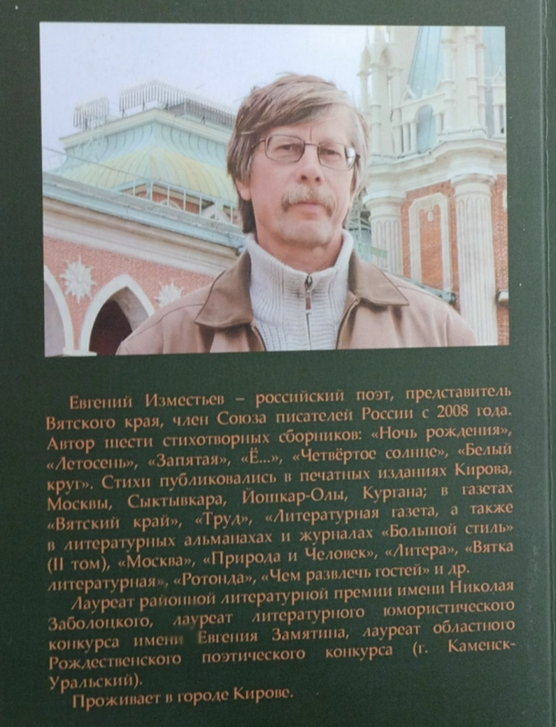А что касается Изместьева, то литературу он не бросил: выпустил несколько сборников со стихами (последний на сегодняшний день, «Календула», вышел в 2024 году) и уникальному, проверенному на зрителях «Поля чудес» творческому стилю не изменил. Взять хоть книгу с многозначительным названием «Ё…» 2012 года, которая открывается фотографией автора в космическом скафандре и авторским эпиграфом: