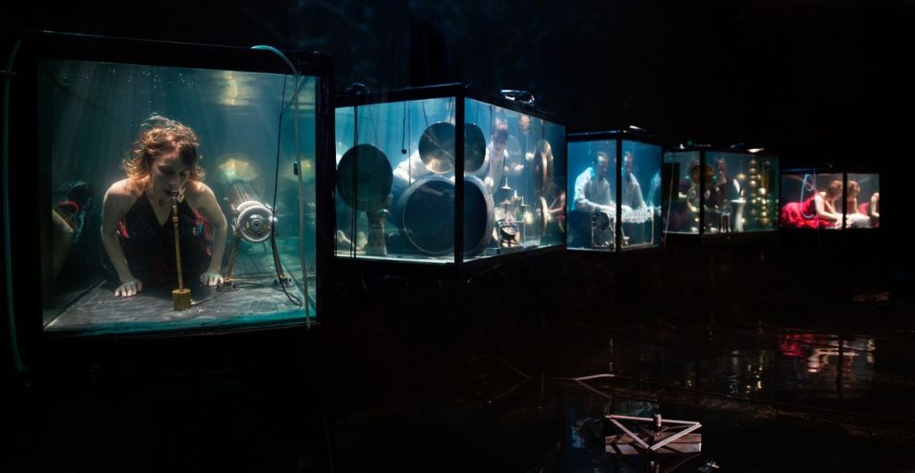 Этот концерт — путешествие в толщи океана под аккомпанемент уникальных инструментов. Музыканты датского коллектива Between Music полностью погружаются в специальные аквариумы и играют на гидрофонных гитарах, керамических колоколах, вращающихся водных литаврах.