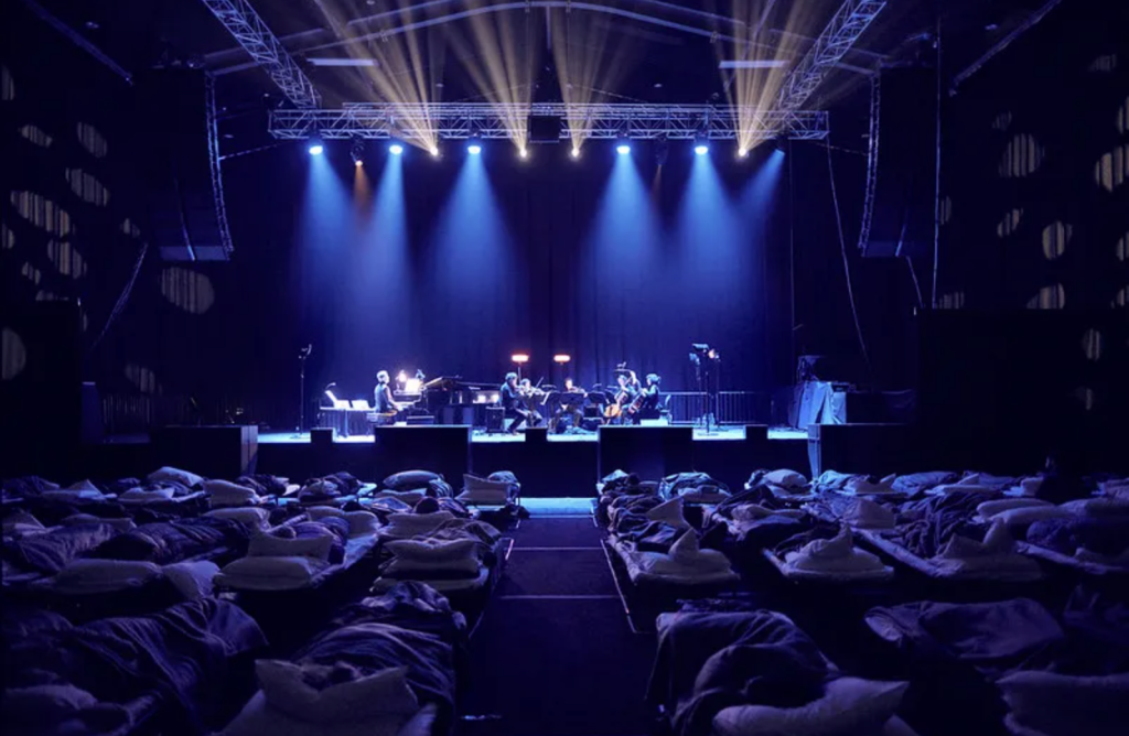 Пожалуй, единственный концерт, который разрешается легально проспать. В зале стоят кровати и раскладушки для слушателей, а на сцене выступают музыканты с альбомом-колыбельной под названием Sleep.