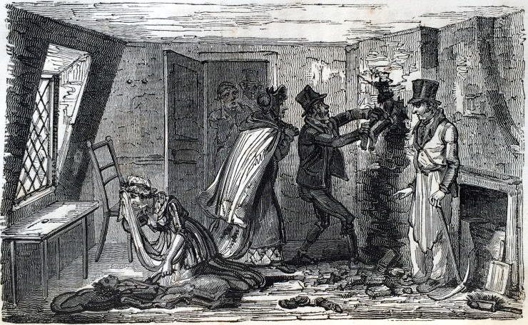 Дети работали наравне со взрослыми вплоть до второй половины XIX века. В принципе, понятие детства появилось как раз в викторианскую эпоху. До этого ребенка долго воспринимали как взрослого ростом поменьше. Маленькие рабочие трудились на шахтах и фабриках, а еще была чисто «детская» работа — например, чистка дымоходных труб. Дома тогда отапливали углем, от него на стенках труб оставалась копоть. Чтобы ее убрать, нужно было или специальное оборудование, или рабочие маленького роста (то есть дети). Поэтому в подмастерья к трубочистам отдавали мальчиков от четырех лет. Сиротские приюты таким образом «обустраивали будущее» своих воспитанников.